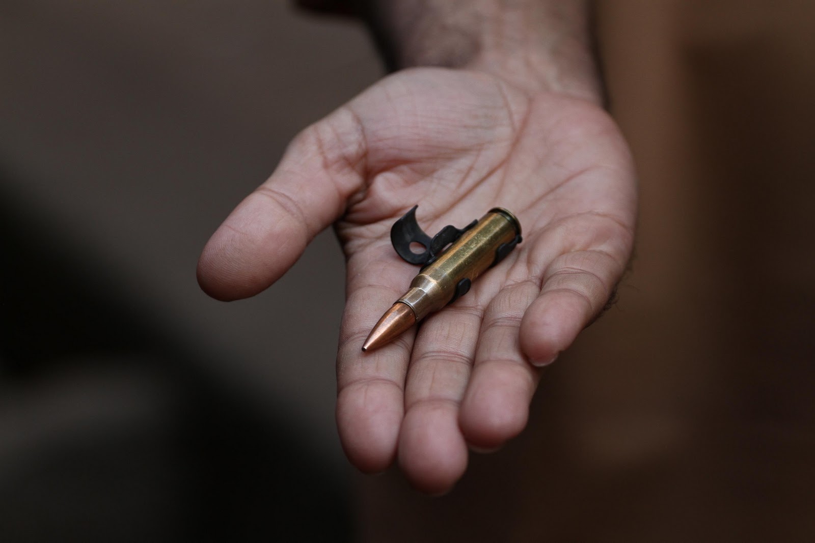 Ein Demonstrant zeigt Munition der Sicherheitskräfte
