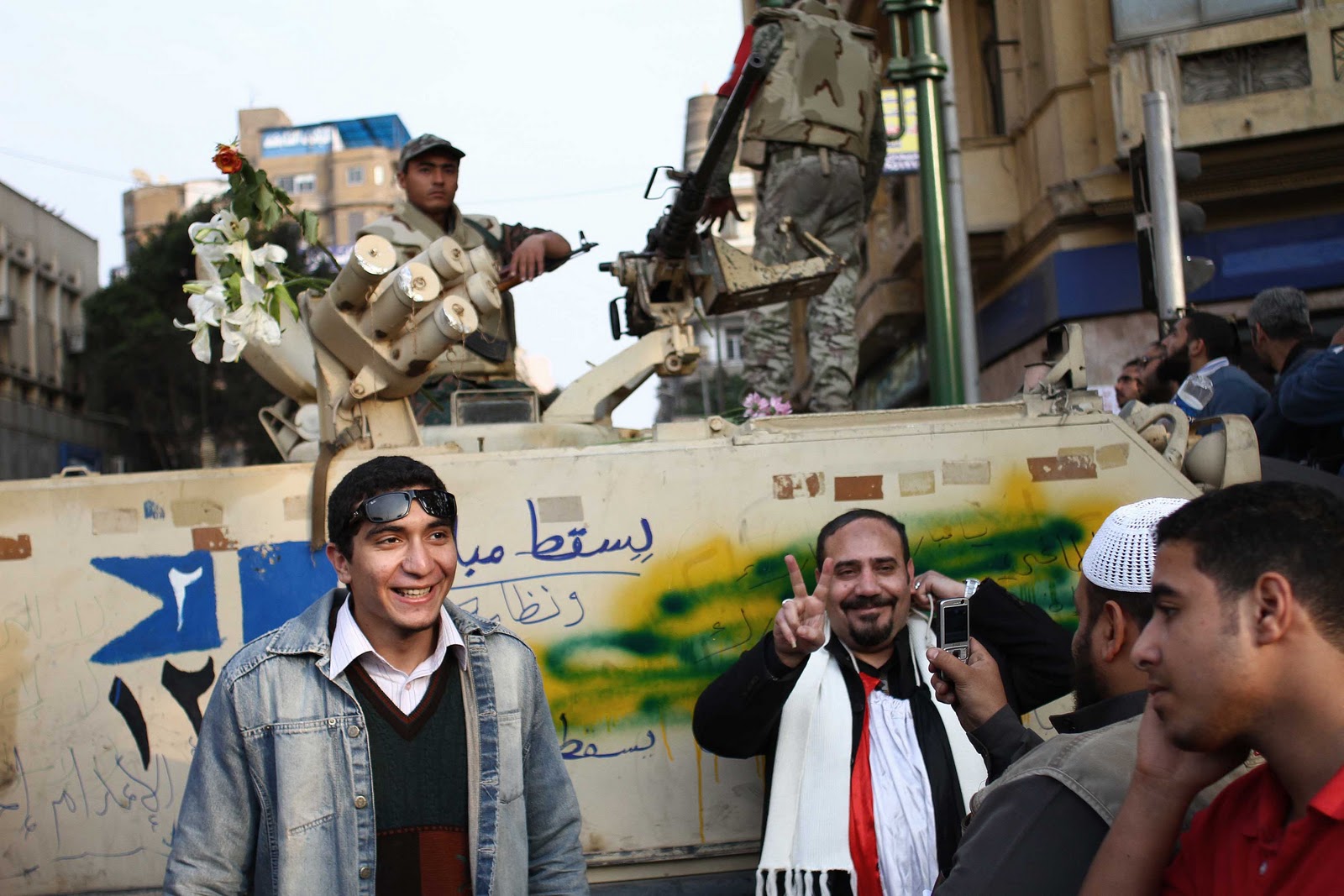 Spielend überwinden sie die von der Armee errichteten Straßensperren und marschieren in Richtung Tahrir-Platz