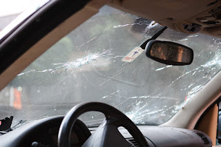 Die Scheibe des Mercedes noch einmal im Detail von vorne.
