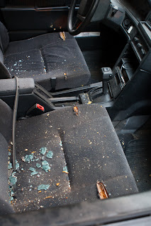 Ein Streifschuss ging durch die rechte Beifahrertür quer durch das Fahrzeug und schnitt dabei die Sitze auf.